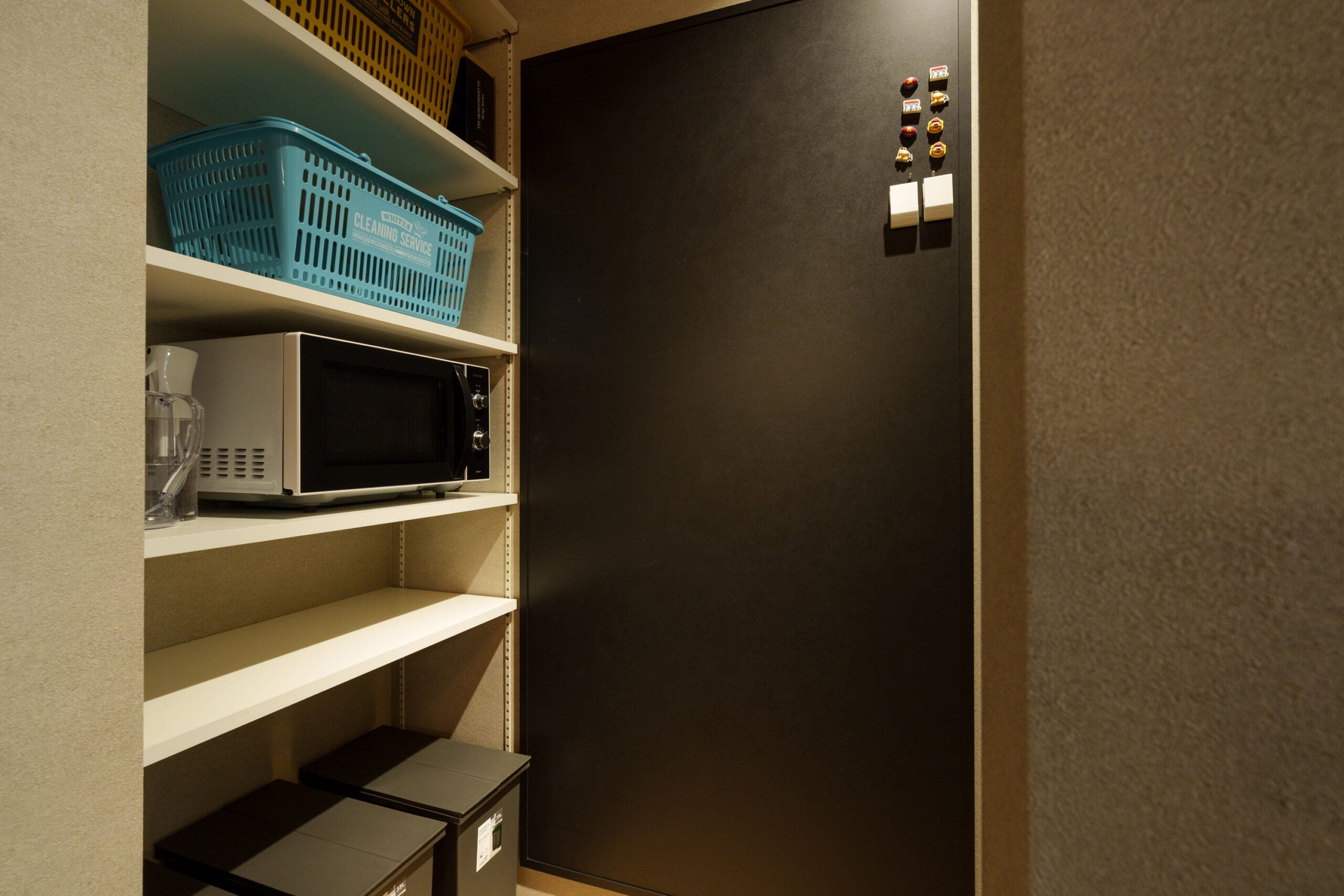 冷蔵庫やゴミ箱をこちらに設置して生活感のないようなレイアウトに♪