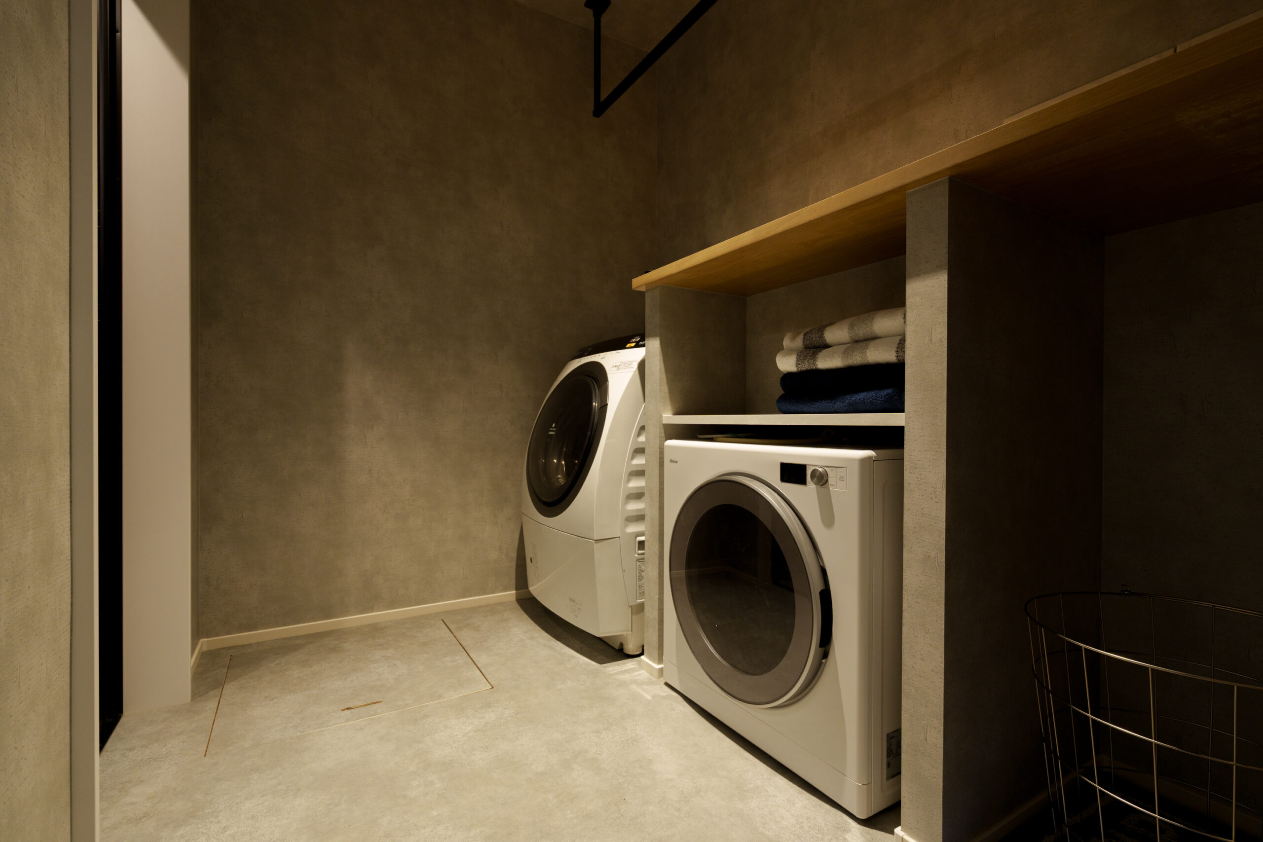 カウンターを設けることでその場で洗濯物をたたむことができます!